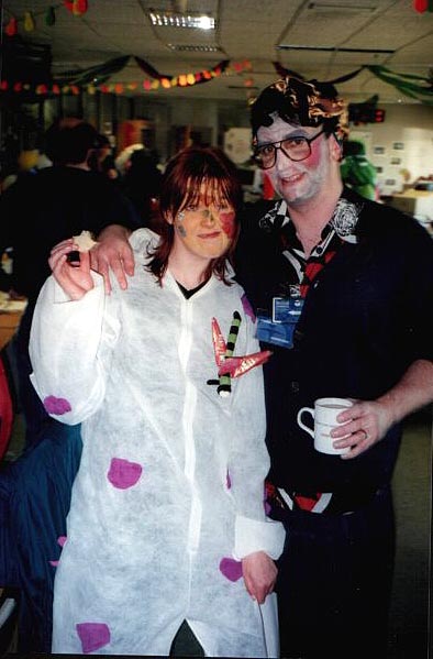I decided to make this web page because they are just so great (so they keep telling me). Traceys Greatness comes from being a 'sex godess/kitten/magnet' (depending on which day you get her) and all round good cookie! Davids greatness is apparently in his trousers and on rare occasions has been known to share his greatness with rooms full of people! As far as I know these are the main great things, but if you know them and would like to contribute then please mail me and i WILL add the comments to this page |